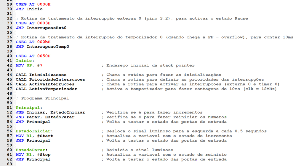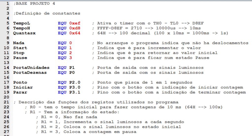 Definição de variáveis Chamadas das inicializações e Programa principal Procedimentos para configurar os componentes Tratamento da interrupção de tempo Navegação de artigos Apresentação do Projeto 5